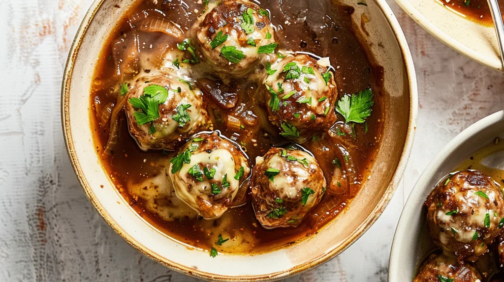 Crockpot French Onion Meatballs are a delicious and comforting dish that combines the rich flavors of French onion soup with hearty meatballs.