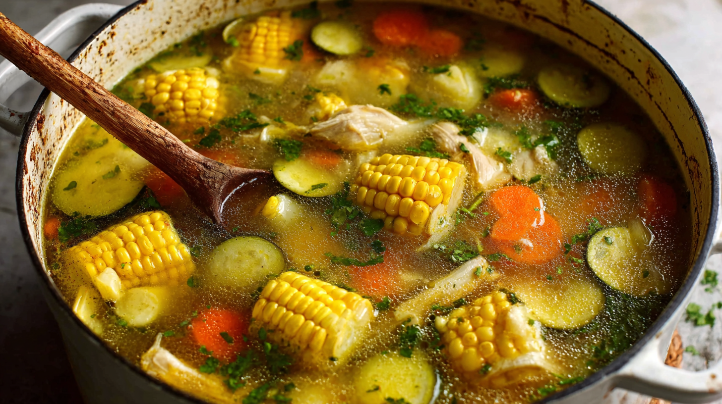 - Add Vegetables: Add carrots and potatoes and cook 10 minutes. Add corn and chayote and cook another 5 minutes. Add zucchini and cook 5 more minutes until all vegetables are tender.